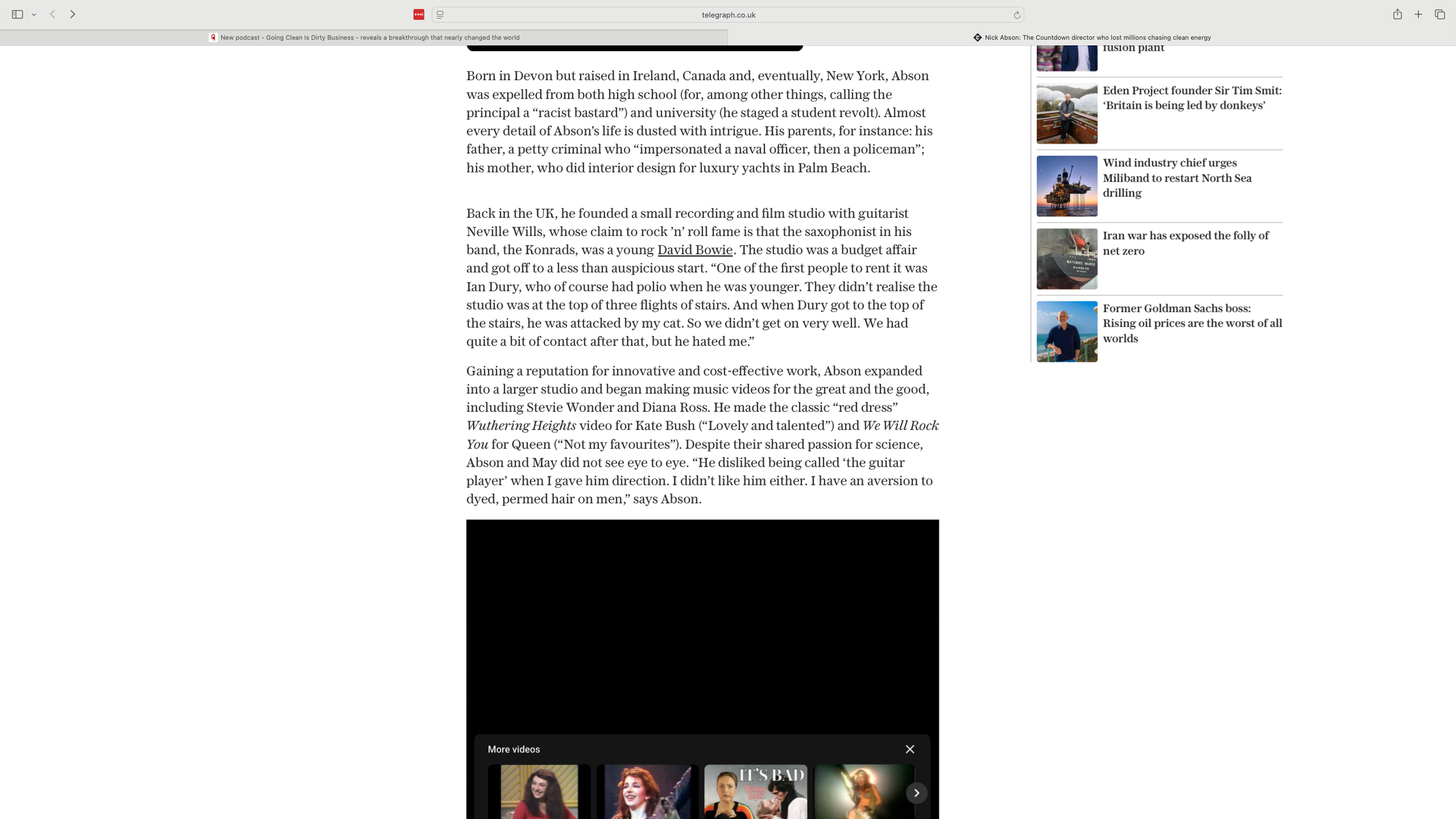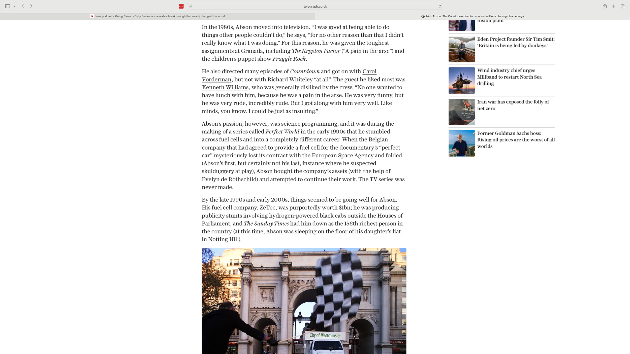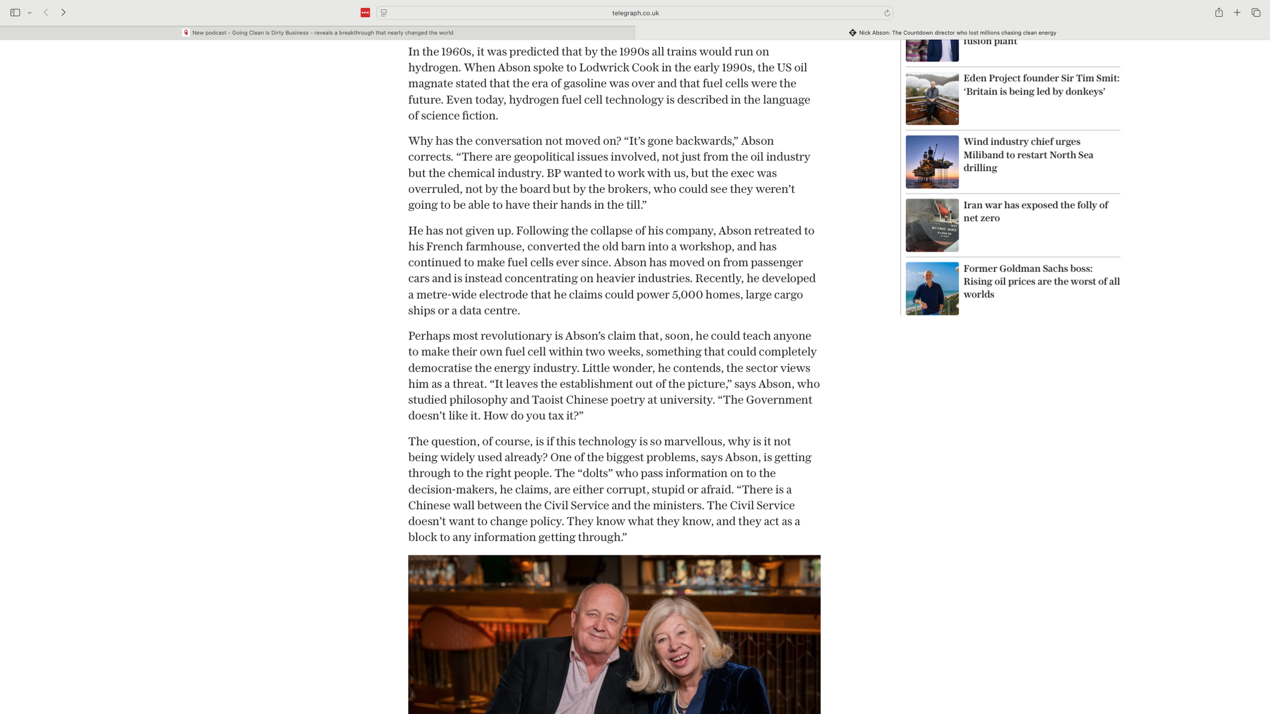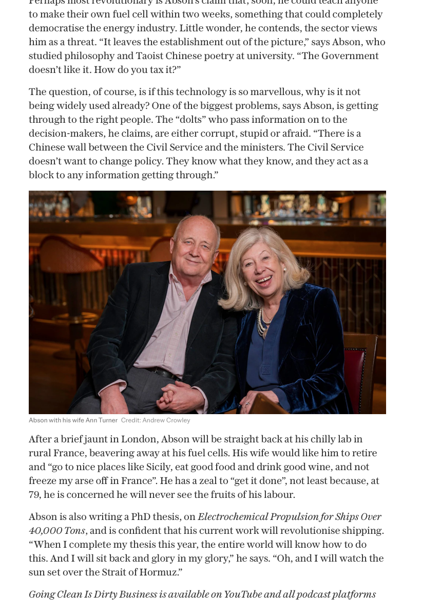 Extended headline feature by Chris Bennion in the Telegraph: ‘The TV director who lost millions chasing clean energy’